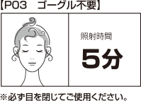 直接視力などに影響する事はありません。ただ、瞬間的に非常に強い光を見ると一時的に周りが暗く感じる事がありますので「ゴーグル要」に該当する照射プログラムでは必ずゴーグルを着用し、ゴーグル不要の照射プログラムでも必ず目を閉じてご使用ください。